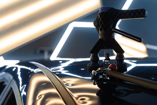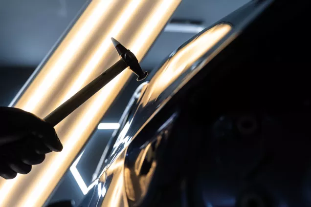 Dans le cadre de la réparation des dégâts causés par la grêle, les garages et carrosseries carXpert tirent et pressent délicatement les bosses présentes sur la carrosserie sans endommager la peinture. Cette technique qui permet de réparer la carrosserie sans mastiquer ni repeindre offre deux avantages majeur : un gain de temps et une réduction importante des coûts de réparation.